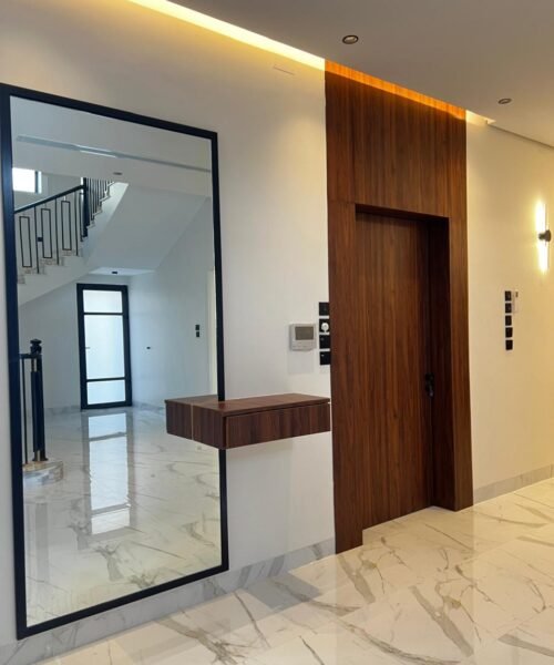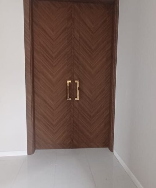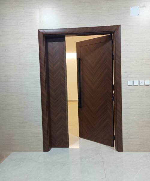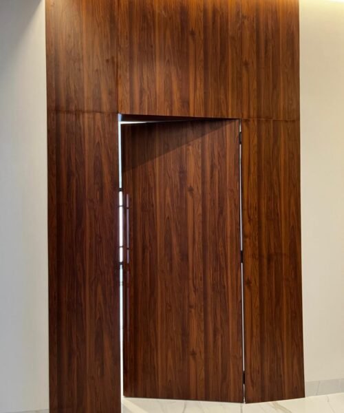 باب wpc درفتين مع ديكور تعلية للسقف