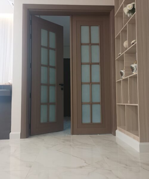 باب wpc مروحة درفتين مع اضافة زجاج 50 %